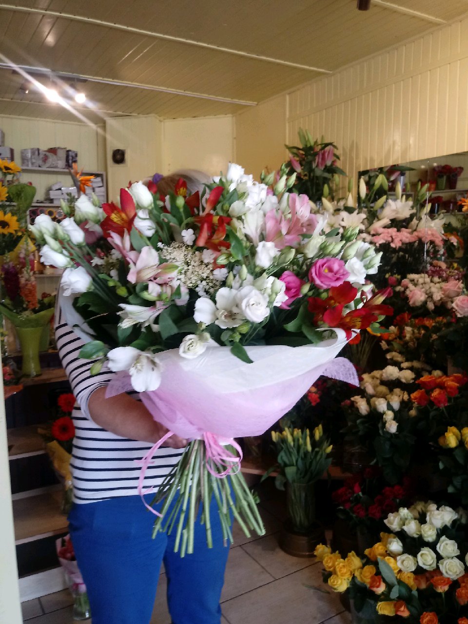 | FLORIST > Адміністратор: Спасибо за отзыв, Людмила! Фотография от флориста перед доставкой: ![]() Действительно, пионы были недоступны, по-этому флорист импровизировал и решил добавить больше роз, при этом стоит сказать, что букет собран на достойном уровне. В Штатах видение стилистики букетов отличается от привычного европейцам и подробное описание букета при передаче заказа в работу помогает собрать ожидаемо красивый букет, не смотря на отличия в стилистике. Мы всегда стараемся сохранить стиль и цветовую гамму букета и предупреждаем, если приходится вносить значимые изменения в букет. Спасибо за заказ и доверие! Обращайтесь еще! ![]() | |