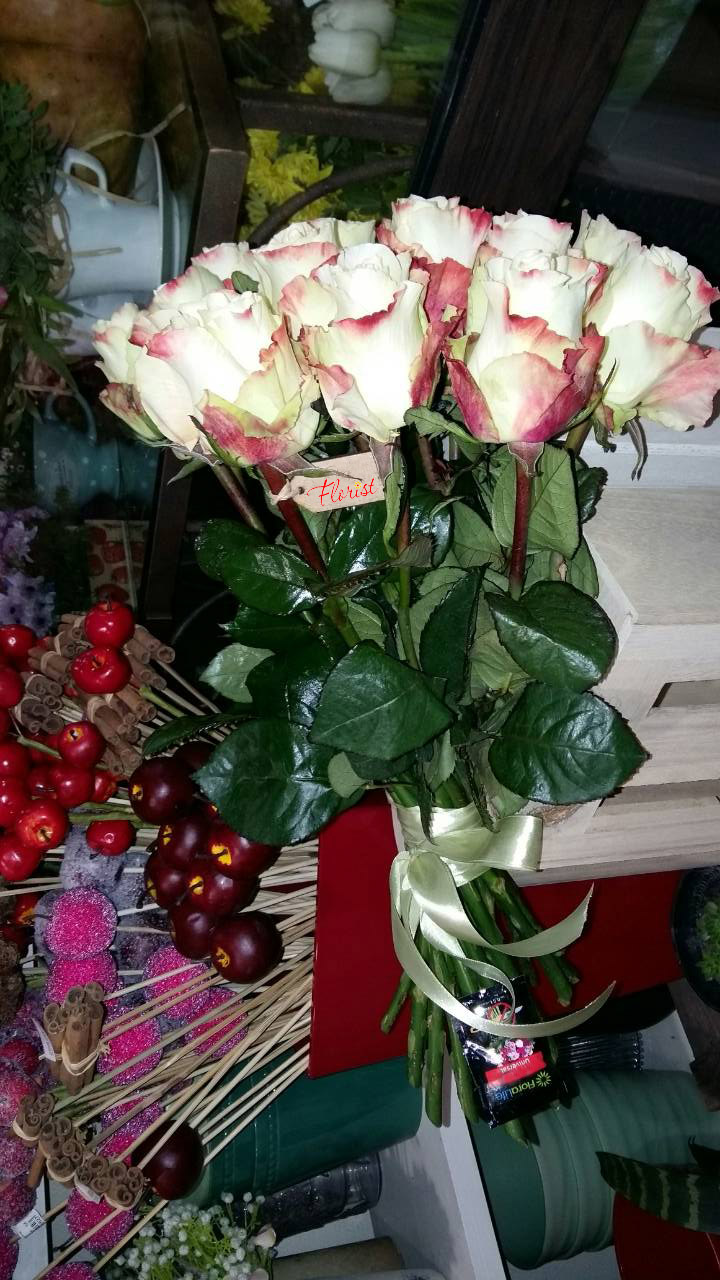 | FLORIST > Адміністратор: Thank you for the order, Wilson! Right.. Florist used roses as on photo bellow: ![]() instead of pure white roses. This time we had to decide quickly to deliver in time, so we decided use such roses as good fresh pure white rose was not available on delivery date. Anyway - sorry, please, next time will agree such changes! Hope to see you again! ![]() | |